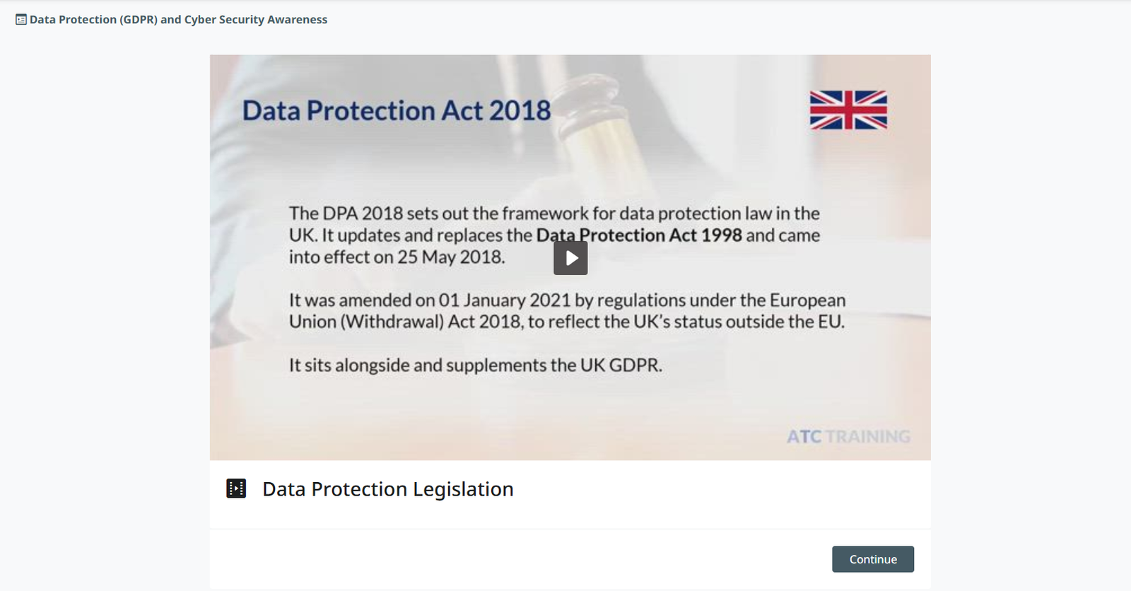 Designed for anyone who handles data at work, including personal data. Learn about the individual and company responsibilities and the key principles of the Data Protection Act 2018, UK and EU General Data Protection Regulation (GDPR).