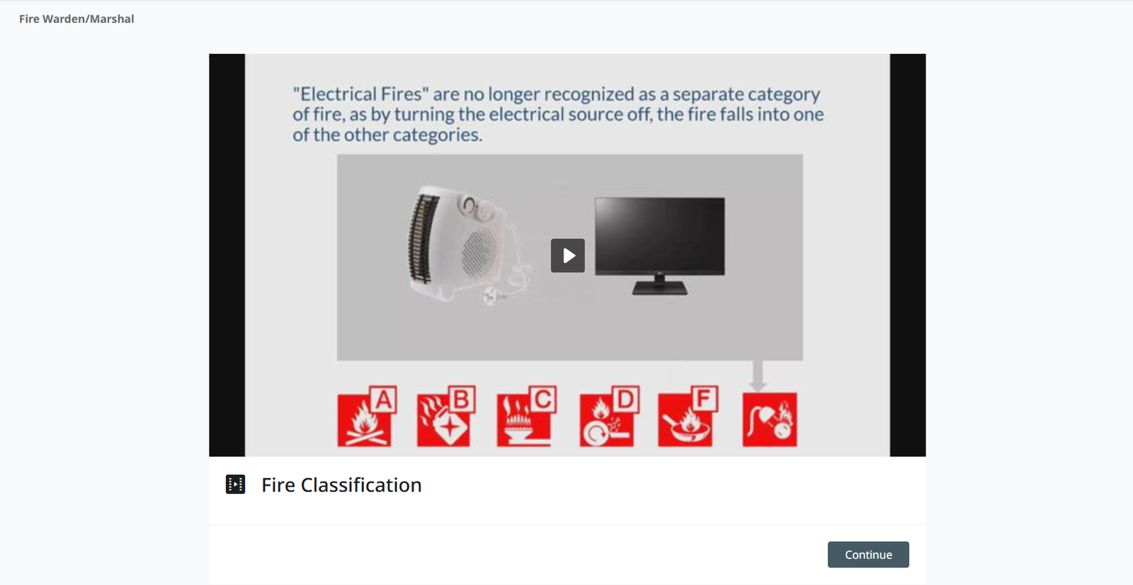 The Fire Safety course provides an overview of fire safety legislation and responsibilities. It also provides practical advice on fire prevention, fire classifications, action upon discovery of a fire, and an introduction to fire extinguishers.